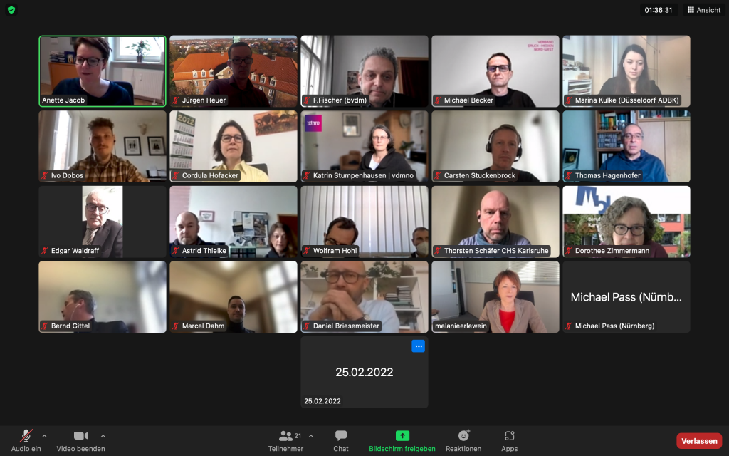 Virtuelles Treffen der Fachschulen am 25.02.22 mit 25 Teilnehmerinnen und Teilnehmern